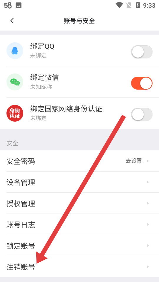 3、在賬號與安全頁面,點(diǎn)擊最下方注銷賬號的按鈕,后續(xù)只需要按系統(tǒng)提示完成身份驗證驗證通過后提交注銷申請。