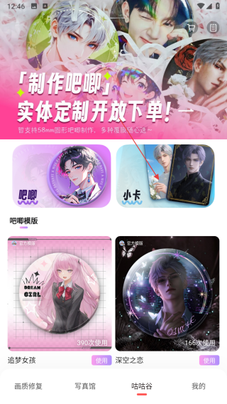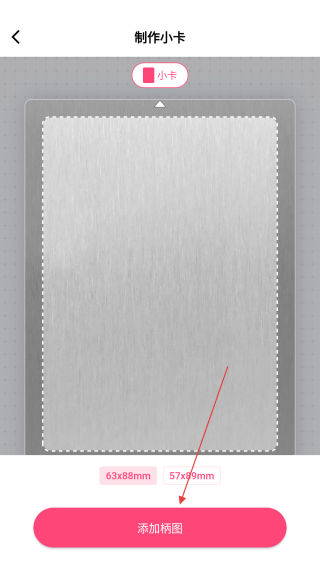 2、在制作小卡界面,選擇想要的小卡尺寸,然后點(diǎn)擊添加柄圖按鈕。