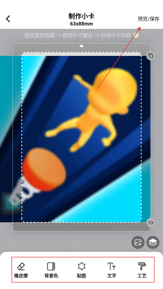 4、照片添加后,可使用底部的工具對(duì)小卡進(jìn)行編輯,編輯完成后點(diǎn)擊右上角保存按鈕。