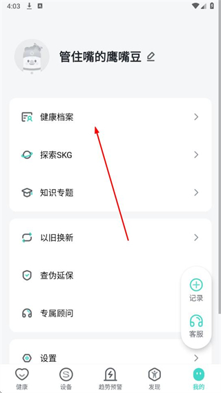1、打開SKG健康A(chǔ)PP,點擊底我的選項。