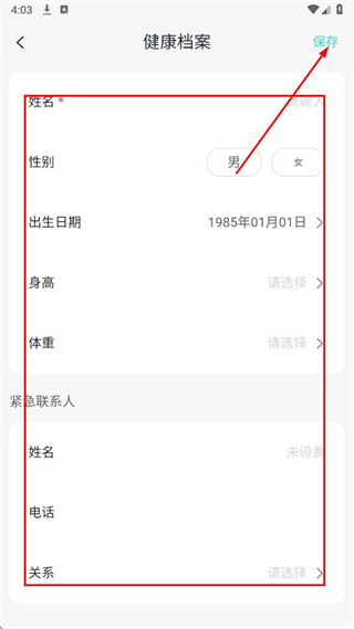 4、在健康檔案填寫頁面,填寫信息,點擊保存即可。