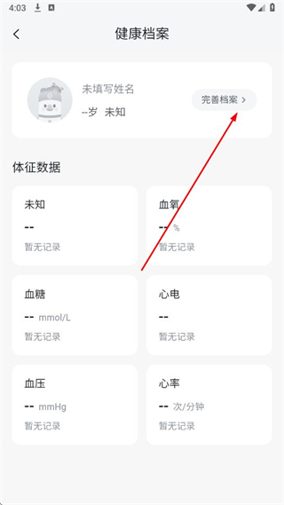 3、在健康檔案頁面,點擊完善檔案按鈕。