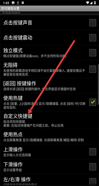 2、在進入到郵箱鍵盤設(shè)置頁面后,可以點擊自定義快捷鍵選項,進入設(shè)置。