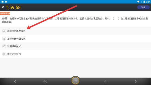 3、在模擬考試中,觀察題目后點擊選擇合適的答案。