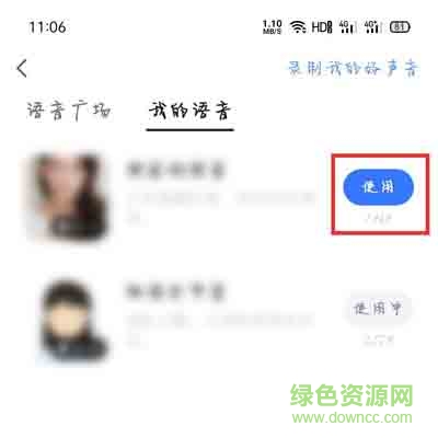6、下載好的語音包在【我的語音】中,點(diǎn)擊【使用】即可切換使用該語音包。
