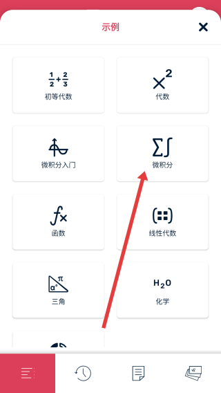 2、在功能示例頁面中,可以點擊微積分選項進(jìn)入查看相關(guān)功能。