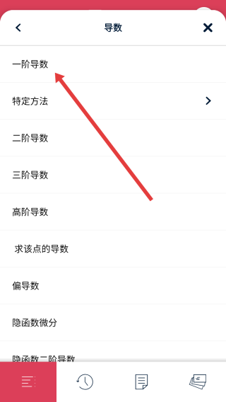 4、可以點擊一階導(dǎo)數(shù)選項,即可開始使用一階導(dǎo)數(shù)計算。