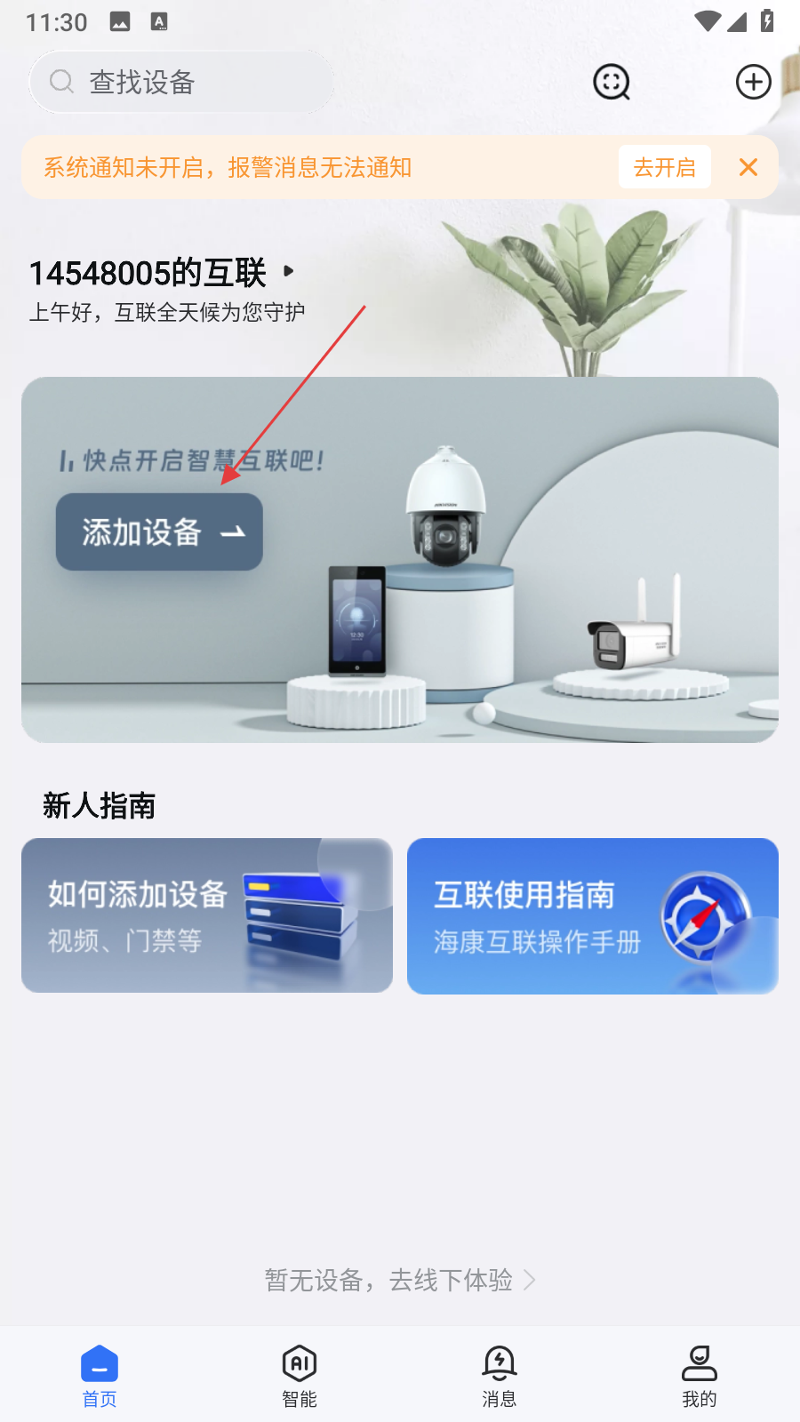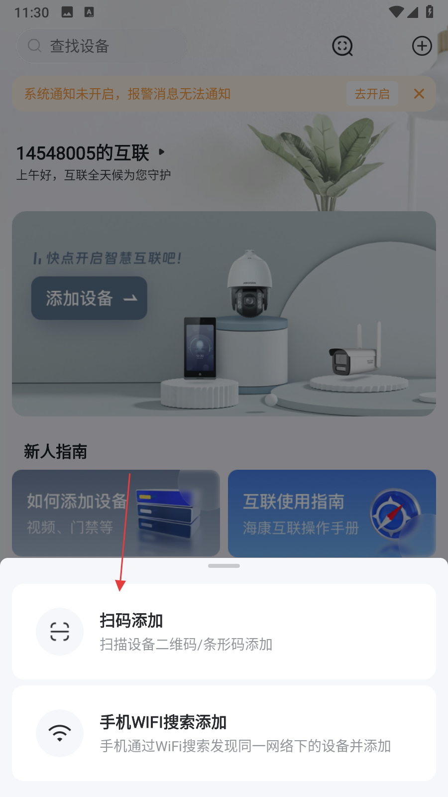 1、打開??祷ヂ?lián)APP,在首頁點擊添加設(shè)備按鈕。