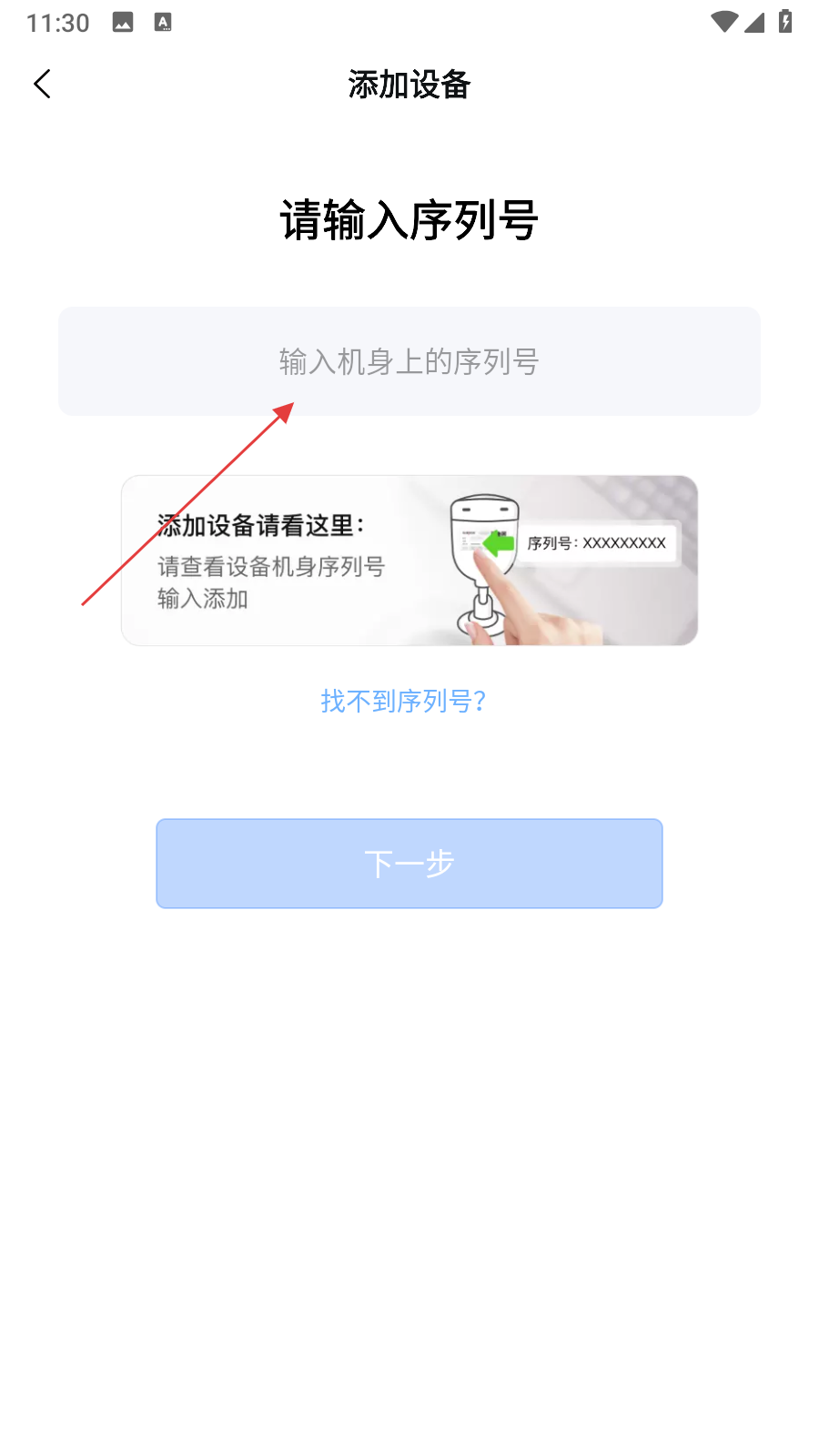 4、在手動添加的請輸入序列號頁面,輸入設(shè)備機身上的序列號,按照提示連接即可。