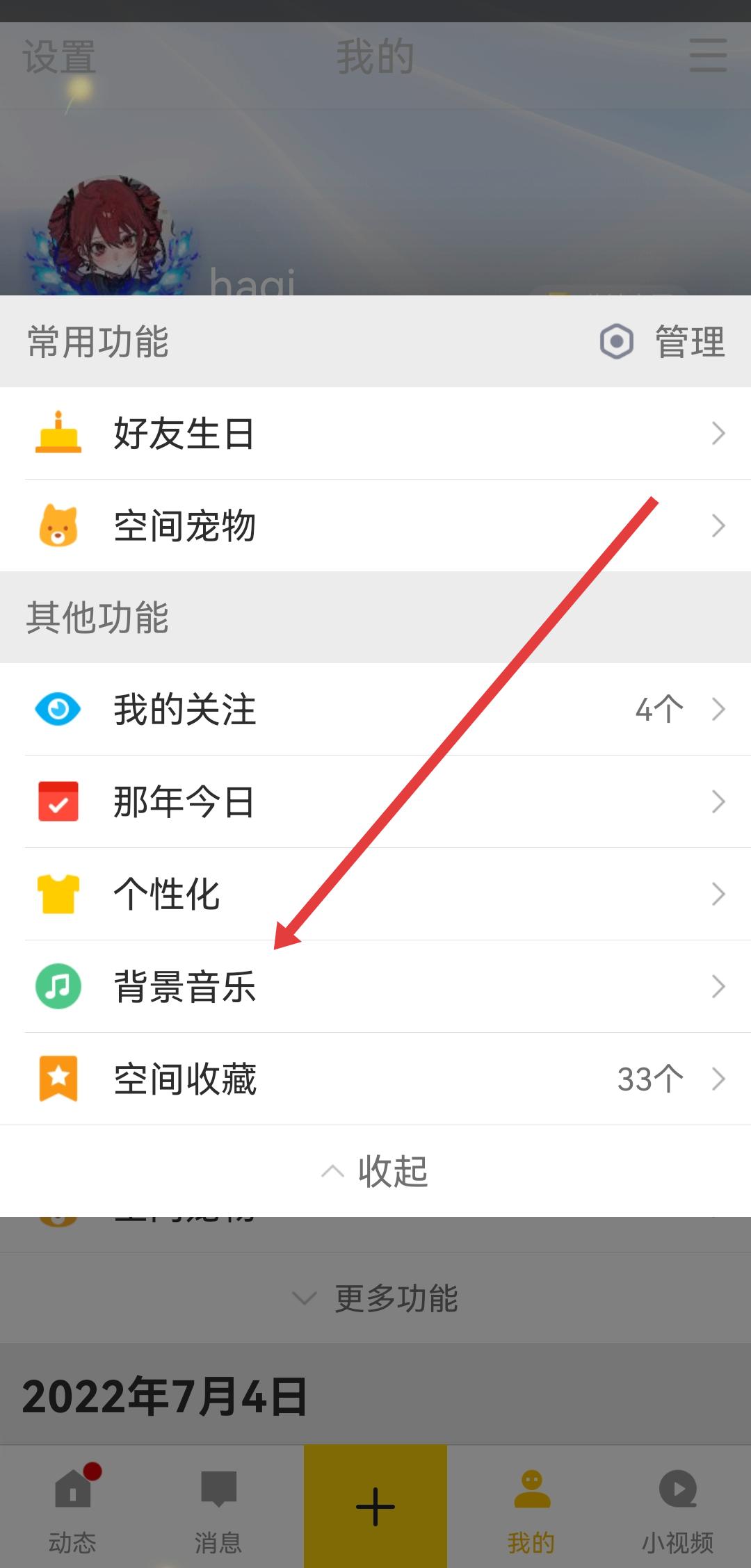 1、打開qq空間APP,進入底部導(dǎo)航欄我的頁面后,需要點擊更多功能的選項。