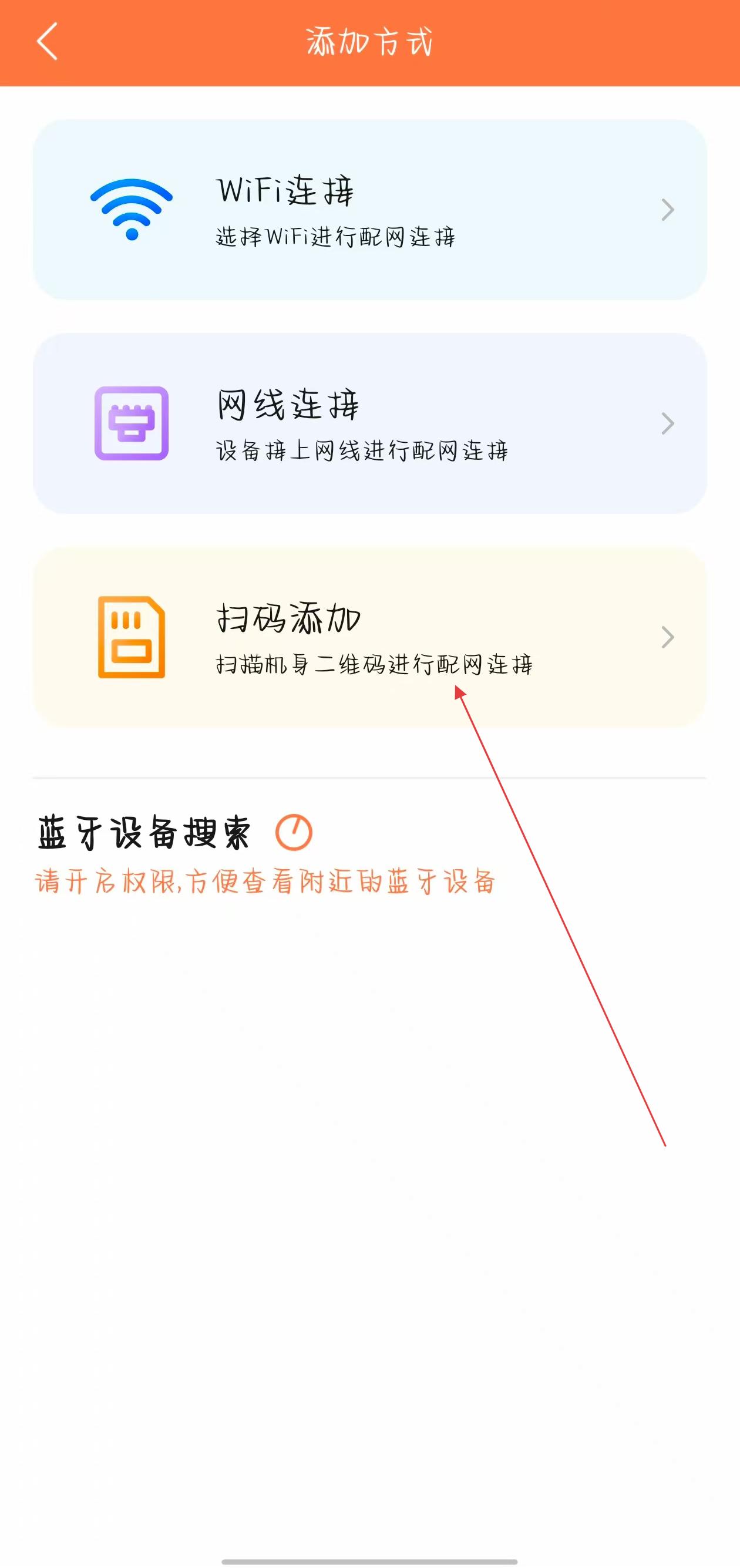 2、在添加方式頁面,選擇掃碼添加選項,進入掃描二維碼界面。