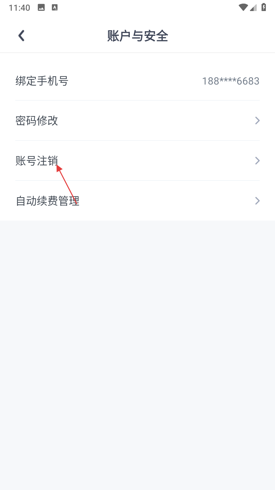 4、在賬戶安全頁面,點(diǎn)擊賬號(hào)注銷選項(xiàng),按提示提示完成注銷流程。