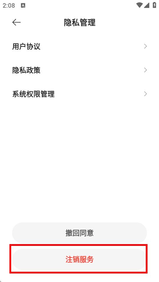4、在隱私管理頁(yè)面中,找到并點(diǎn)擊注銷服務(wù),按照頁(yè)面提示完成賬號(hào)注銷操作。