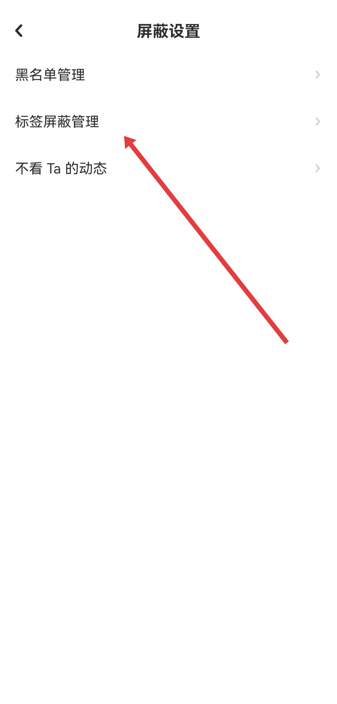 3、在屏蔽設(shè)置界面中,點(diǎn)擊標(biāo)簽屏蔽管理選項(xiàng),即可進(jìn)入標(biāo)簽屏蔽設(shè)置頁(yè)面,按提示操作屏蔽不想看到的tag。