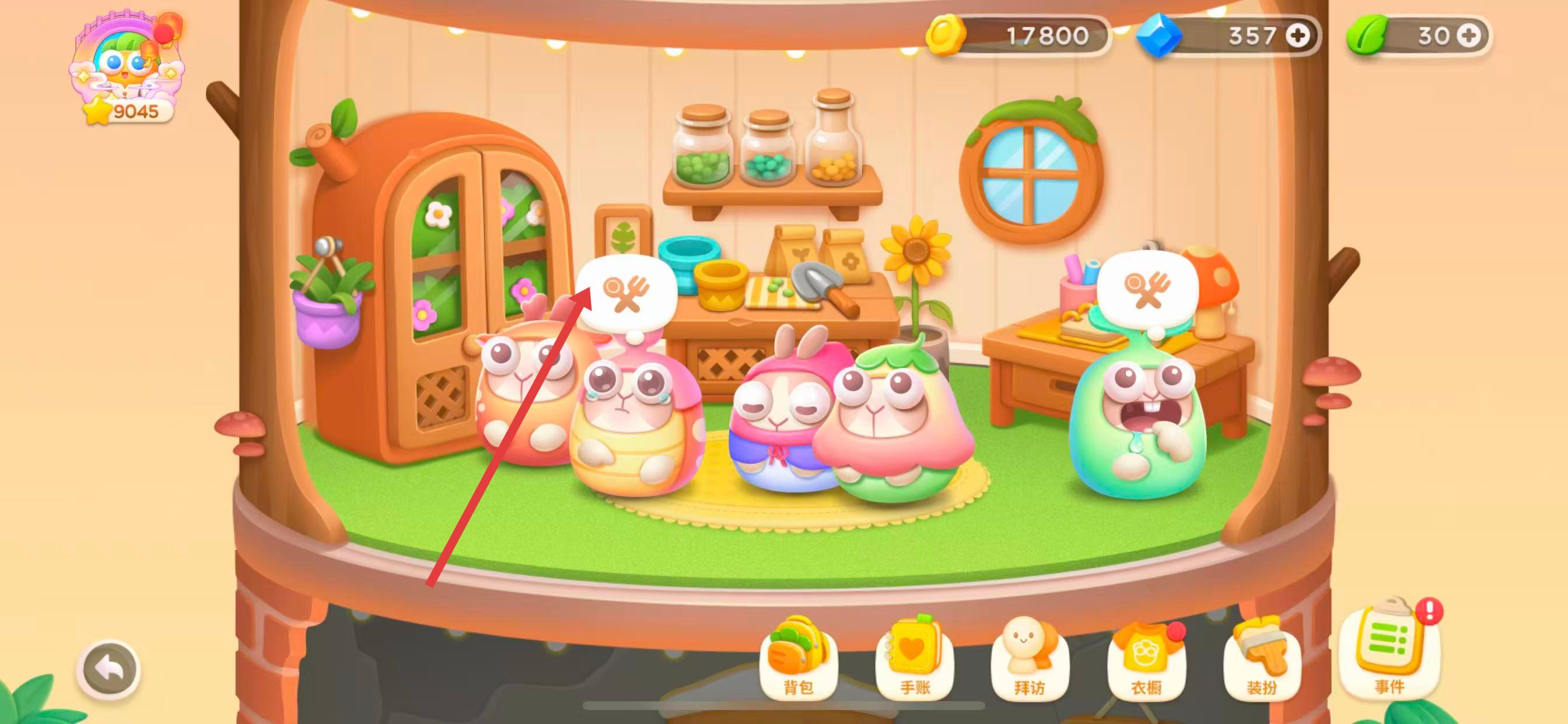 2、在兔子窩中,找到頭頂帶餐叉圖標(biāo)的兔子,點(diǎn)擊該兔子,進(jìn)入專屬互動界面。