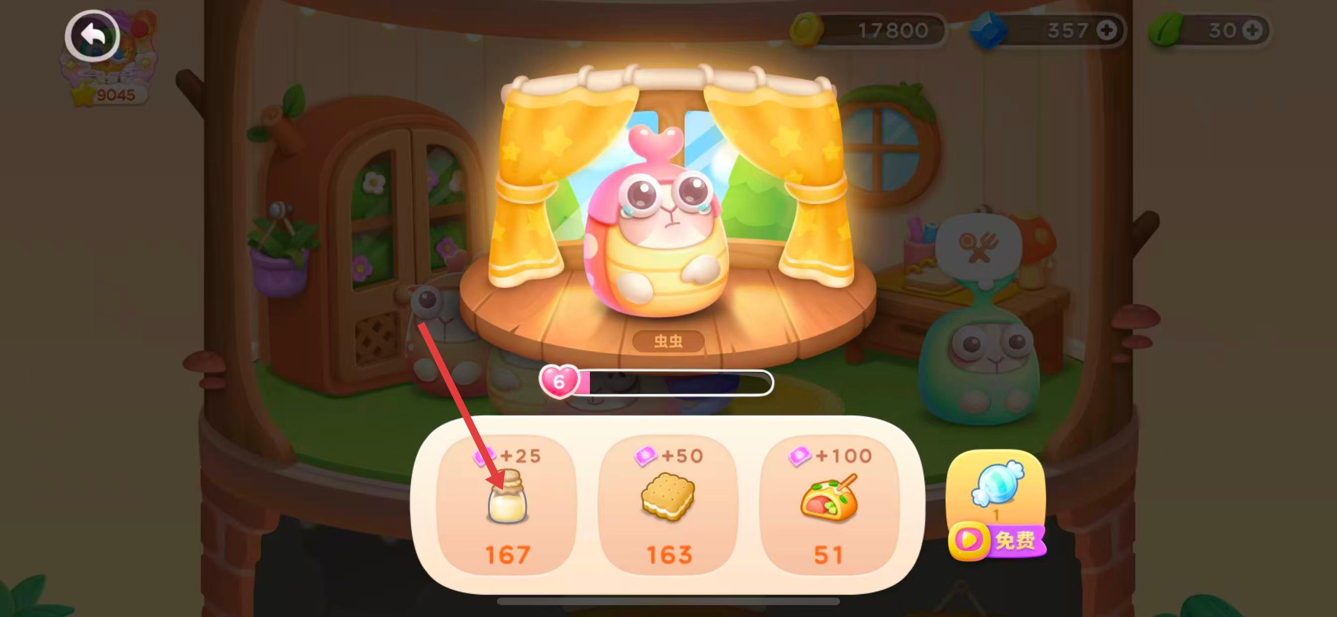 3、在互動界面下方的食物欄,選擇想要投喂的食物,如牛奶。