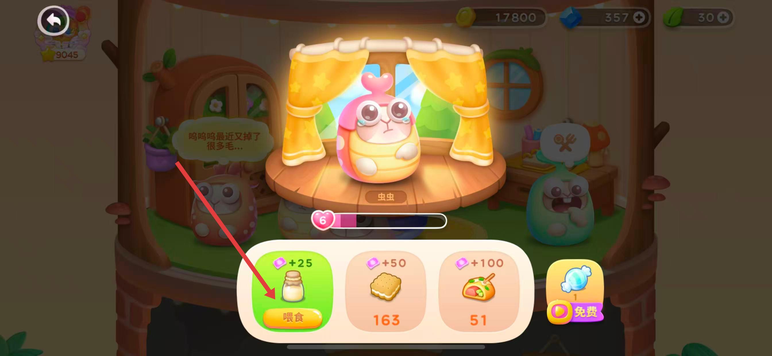 4、點(diǎn)擊所選食物下方的「喂食」按鈕,即可完成對該兔子的喂食,提升親密度。