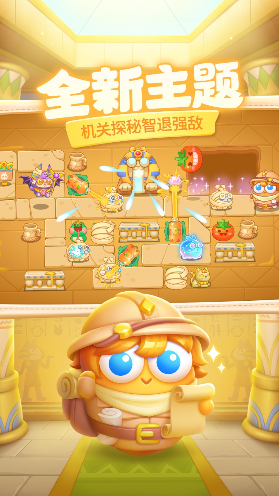 7月25日,「法老歸來」重磅上線!全新120張主題關(guān)卡陸續(xù)開放,迎接新的冒險(xiǎn)挑戰(zhàn)!金字塔內(nèi)暗藏玄機(jī),帶來策略玩法新體驗(yàn)!20+呆兔敵人及「神秘法老」登場,與阿波、阿秋一起在金字塔內(nèi)進(jìn)行奇妙探險(xiǎn),揭開法老的神秘面紗吧!
