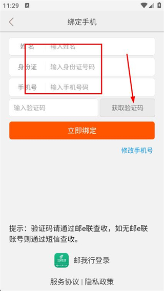 2、在進(jìn)入到綁定手機(jī)頁(yè)面時(shí),可以先點(diǎn)擊底部的隱私政策協(xié)議閱讀后完成綁定操作。