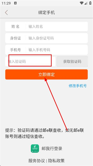 3、填入收到的驗(yàn)證碼,點(diǎn)擊立即綁定按鈕,完成手機(jī)綁定后即可登錄。