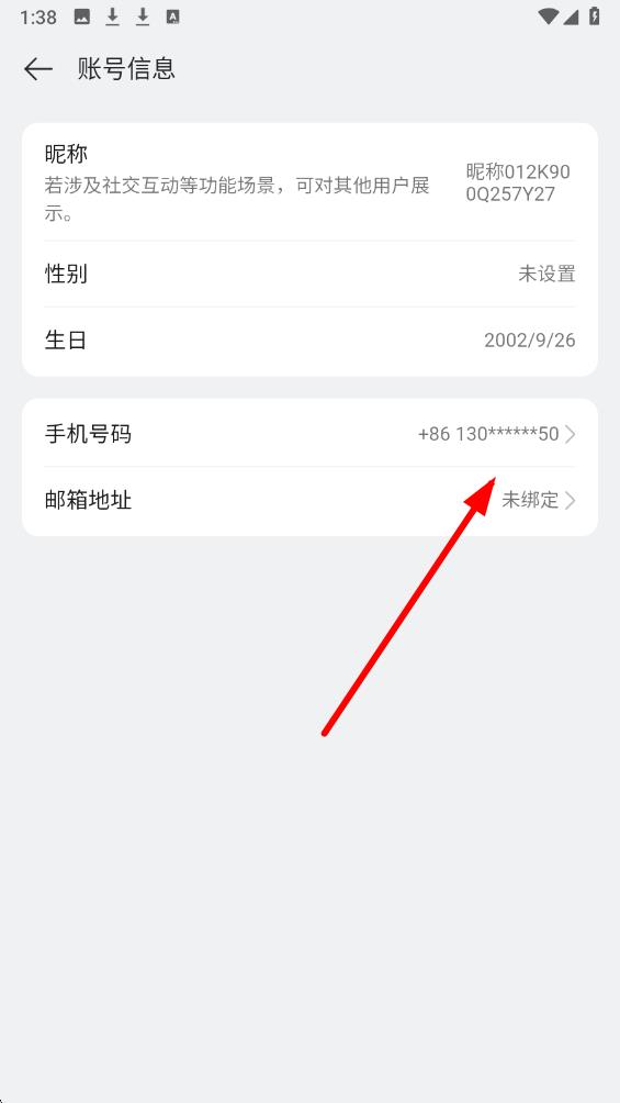 3、在賬號(hào)信息界面點(diǎn)擊手機(jī)號(hào)碼選項(xiàng),進(jìn)入手機(jī)號(hào)碼詳情頁(yè)查看當(dāng)前綁定手機(jī)號(hào)。