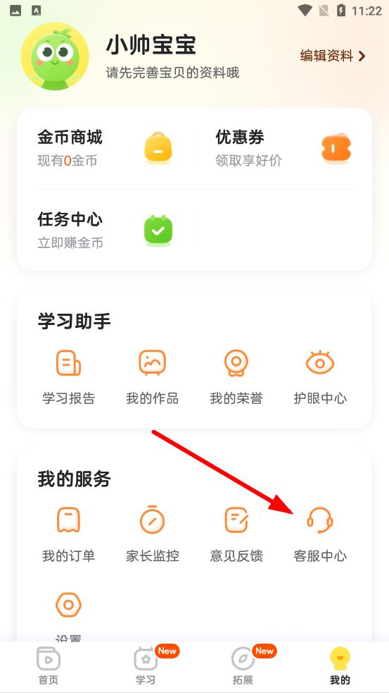 2、在個(gè)人頁(yè)面中向下滑動(dòng)找到客服中心選項(xiàng),點(diǎn)擊進(jìn)入客服相關(guān)界面。