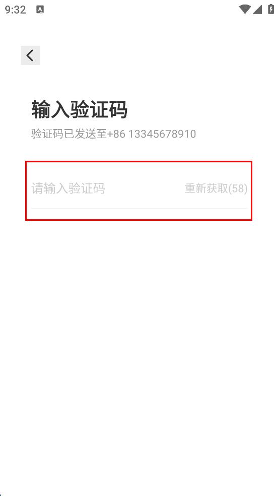 4、進(jìn)入輸入驗證碼頁面,在“請輸入驗證碼”處輸入收到的驗證碼,完成驗證后即可完成注冊登錄操作。