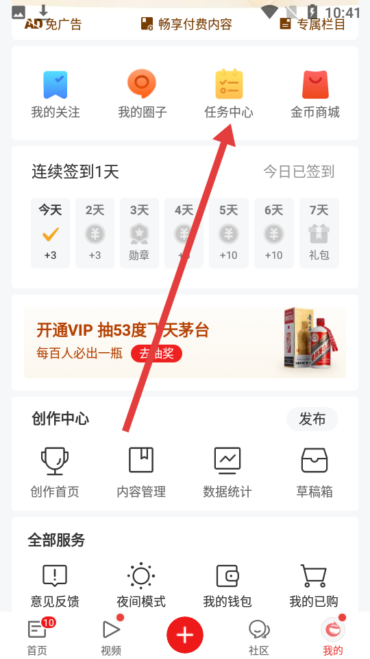 1、打開(kāi)網(wǎng)易新聞點(diǎn)擊我的,再點(diǎn)擊任務(wù)中心進(jìn)入任務(wù)界面。