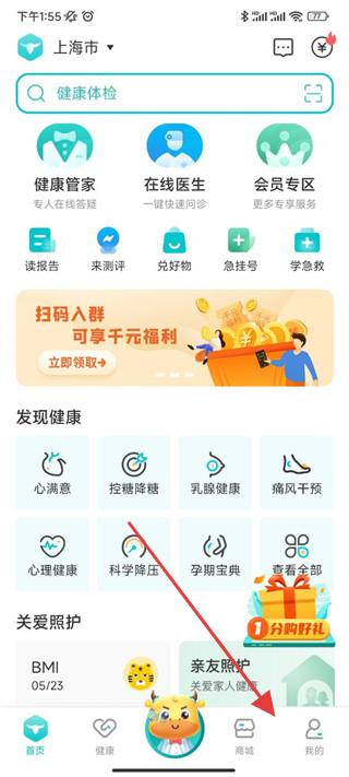 1、打開(kāi)蠻牛健康A(chǔ)PP,點(diǎn)擊導(dǎo)航欄中的我的。