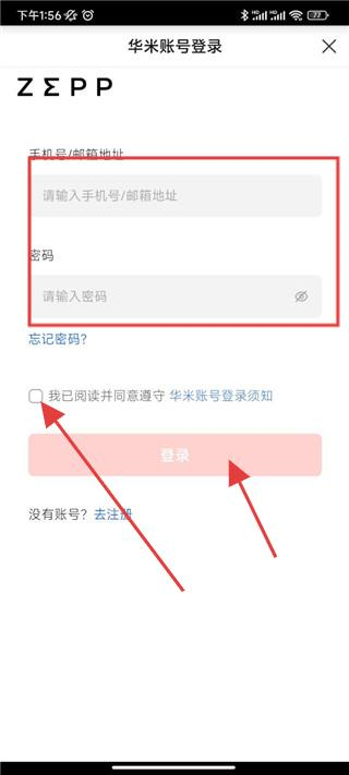 2、在我的頁(yè)面中,點(diǎn)擊登錄,進(jìn)入華米賬號(hào)登錄頁(yè)面。