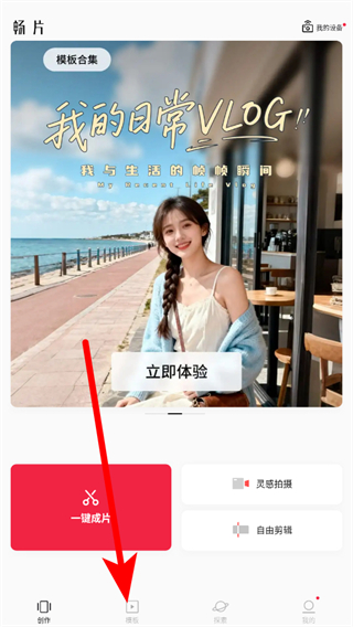 1、打開暢片應(yīng)用,點擊底部的模板選項。