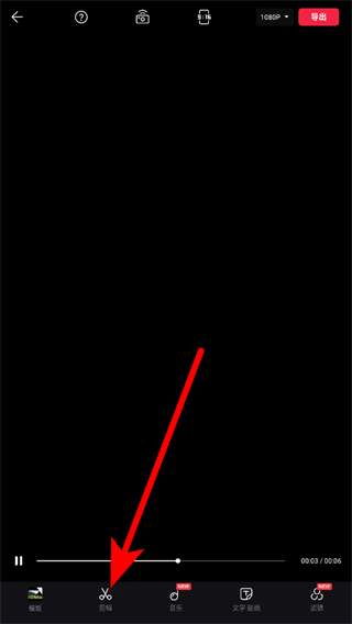 4、在編輯頁面點擊底部的剪輯選項,對視頻進行剪輯后點擊右上角導(dǎo)出即可。