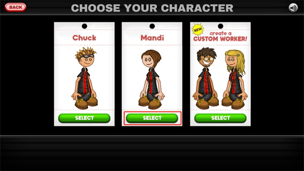 3、選擇一個炸雞店的角色進入游戲,同時還加入了全新的雙人游戲內(nèi)容模式中,這里小編點擊的是中間【Mandi】角色然后即可進入游戲中;