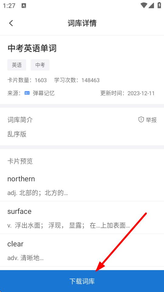3、在詞庫詳情的頁面,需要點擊下載詞庫按鈕,完成詞庫的下載。