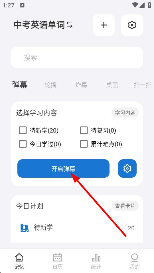 4、詞庫下載完成后,點擊開啟彈幕,開始使用彈幕記憶學(xué)習(xí)單詞。