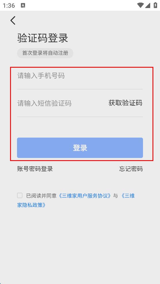 4、在驗證碼登錄頁面輸入手機(jī)號碼,點擊獲取驗證碼,收到后輸入驗證碼,勾選已閱讀并同意相關(guān)協(xié)議,點擊登錄按鈕完成登錄。