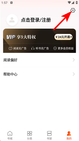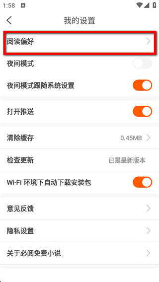 3、在我的設置頁面,點擊閱讀偏好選項,進入閱讀偏好頁面。