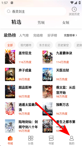 1、在閱讀APP書城頁面,點擊右下角我的選項,進入我的頁面。