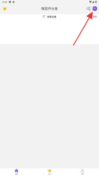 1、打開微信雙開分身軟件,進(jìn)入到首頁(yè),點(diǎn)擊右上角+號(hào)的按鈕。