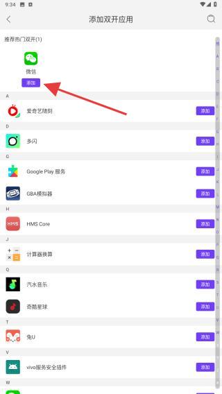 3、在添加雙開的應(yīng)用中,找到你要雙開的軟件,點(diǎn)擊添加即可。