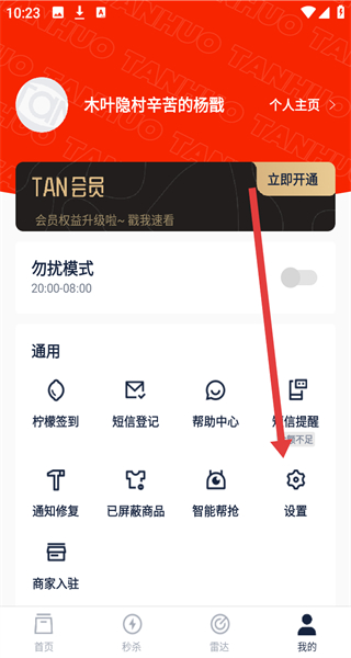1、在APP個人中心頁面點(diǎn)擊“設(shè)置”,進(jìn)入設(shè)置頁面。