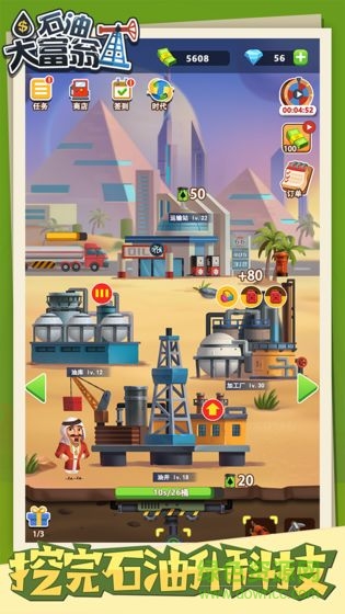 石油大富翁游戲讓你成為中東石油公司老板,不斷的開車石油來變成一個(gè)大富翁,升級(jí)自己的開采石油的工具來獲得更多的石油,慢慢的解鎖更高級(jí)的設(shè)施,成為最有錢的石油大富翁,感興趣的小伙伴下載試試看吧!