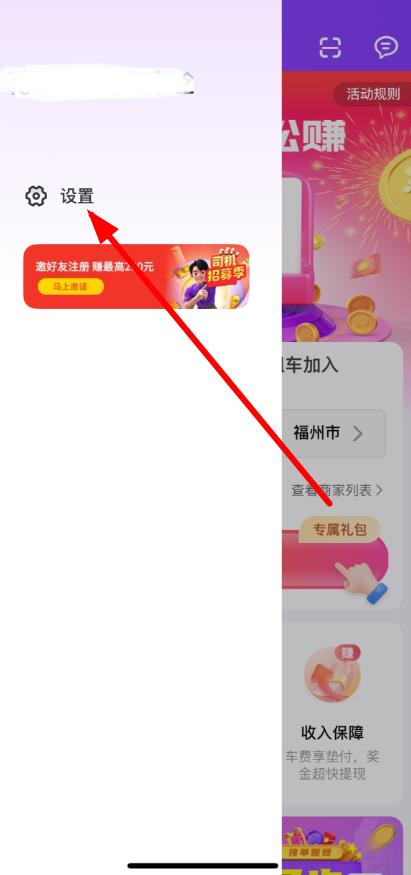 1、打開花小豬司機(jī)端APP,在界面中找到并點(diǎn)擊設(shè)置按鈕。