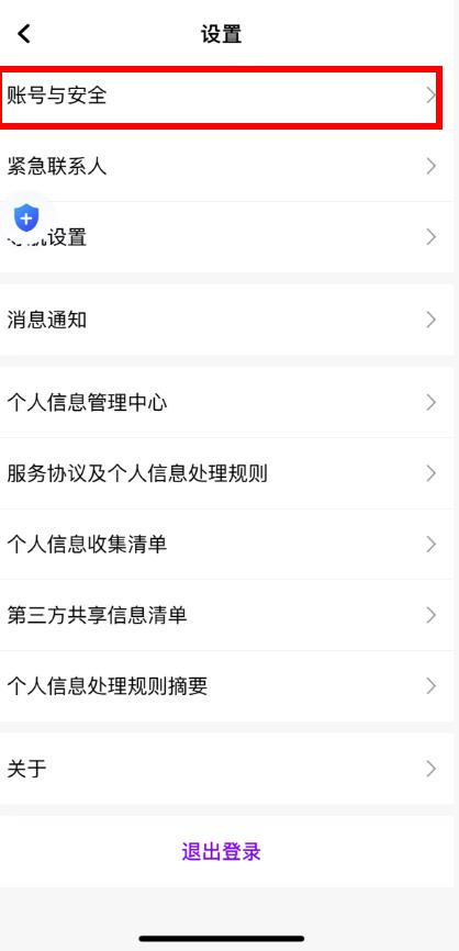 2、進(jìn)入設(shè)置頁(yè)面后,點(diǎn)擊賬號(hào)與安全選項(xiàng)。