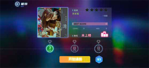 3.小編在這里以《月牙灣》為例,解鎖玩歌曲后,“解鎖歌曲”就會變?yōu)椤伴_始演奏”,點擊進入即可開始游戲;