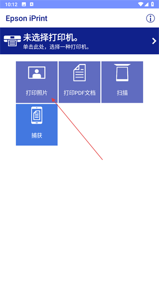1、打開Epson iPrint應(yīng)用,在主界面點(diǎn)擊打印照片選項(xiàng)。