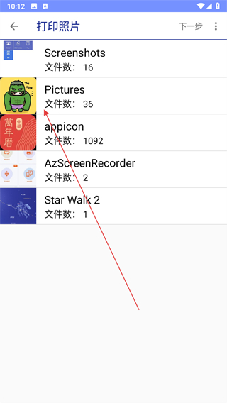 2、在照片選擇頁(yè)面,找到存儲(chǔ)所需打印圖片的文件夾。