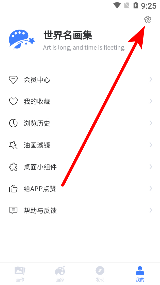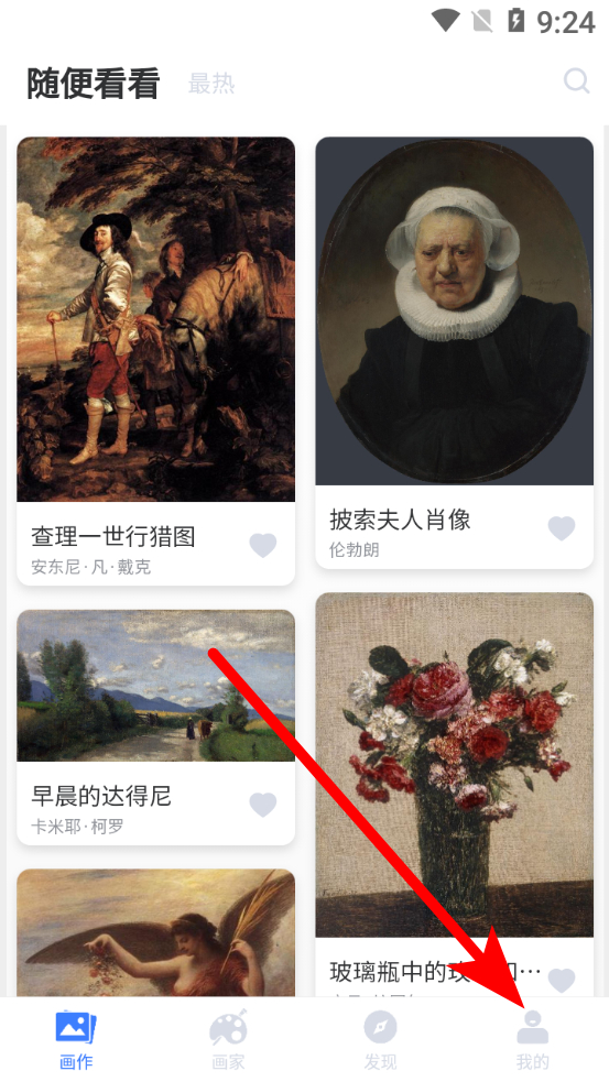 1、在世界名畫集app畫作頁(yè)面,點(diǎn)擊右下角我的選項(xiàng),進(jìn)入個(gè)人界面。