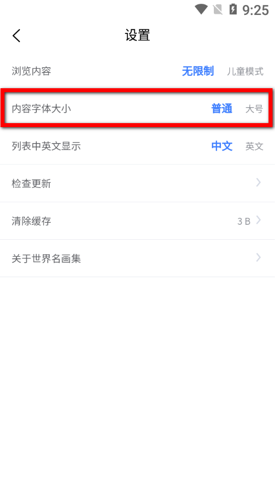 4、選擇對(duì)應(yīng)字體大小后,即可完成世界名畫集app字體大小設(shè)置操作。