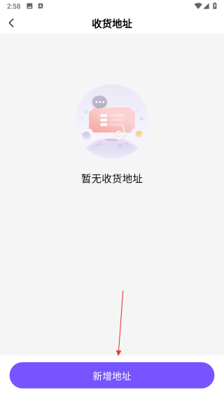3、在收貨地址管理頁面,點擊新增地址按鈕,進入新增地址填寫頁面。
